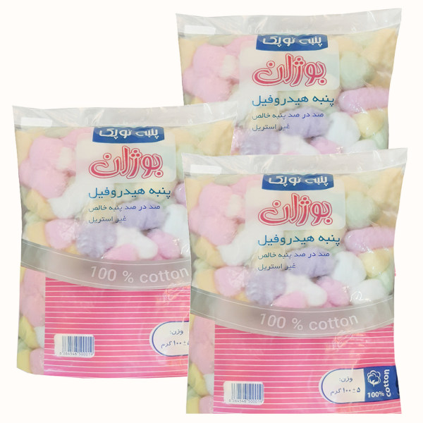 پنبه آرایشی پنبه هیدروفیل بوژان مدل 27004 وزن 100 گرم مجموعه 3 عددی