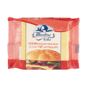 پنیر ورقه ای گودا ماردینی - 180 گرم: پنیر پروسس یك محصول لبنی است که در نتیجه مخلوط نمودن و ذوب کردن چند نوع پنیر طبیعی (رسیده و تازه) همراه با سایر اجزاء لبنی تولید میشود و دارای عطر و طعم ملایم پنیری می باشد . این محصول به علت حرارتی که در هنگام پخت می بیند، از لحاظ بهداشتی پنیر مطمئن تری است. این محصول بصورت ورقه ای در انواع ساندویچ سرد و گرم استفاده می گردد. از مهمترین ویژگیهای آن ، ذوب شدن در تماس با غذای گرم می باشد. پنیر پروسس ورقه ای برای حرارت دیدن مستقیم، داخل فر مناسب نمی باشد و بهتر است در لابلای ساندویچ یا لایه های میانی انواع غذاها مانند لازانیا و ماکارونی استفاده شود.