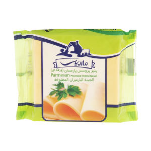 پنیر پروسس پارمسان ماردینی - 180 گرم: پنیر پروسس یك محصول لبنی است که در نتیجه مخلوط نمودن و ذوب کردن چند نوع پنیر طبیعی (رسیده و تازه) همراه با سایر اجزاء لبنی تولید میشود و دارای عطر و طعم ملایم پنیری می باشد . این محصول به علت حرارتی که در هنگام پخت می بیند، از لحاظ بهداشتی پنیر مطمئن تری است. این محصول بصورت ورقه ای در انواع ساندویچ سرد و گرم استفاده می گردد. از مهمترین ویژگیهای آن ، ذوب شدن در تماس با غذای گرم می باشد. پنیر پروسس ورقه ای برای حرارت دیدن مستقیم، داخل فر مناسب نمی باشد و بهتر است در لابلای ساندویچ یا لایه های میانی انواع غذاها مانند لازانیا و ماکارونی استفاده شود.