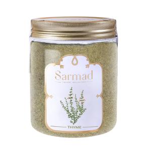 پودر آویشن سرمد : طبيعتى بسيار گرم و خشك دارد. تركيب شيميايى: اسانس روغنى فرّار به نام سرپوله- ترپنالكل- ايزومر آناورسوليك اسيد- اولئانوليك اسيد- پينن- ال پينن- دىالپينن- سيمن- پىسيمن- تيمول- پاراتيمول- ترپن- بورنيلآستات- لينالول- بورنئول- كارواكرول- خواص درمانى: 1- تازه آن را به صورت سبزى با غذا بخوريد. بسيار مفيد است، معده را تقويت مىكند، براى تقويت ديد چشم نافع است. 2- خوردن 10 گرم كوبيده آن مخلوط با عسل و آب گرم براى درمان فلج و لقوه و رفع فراموشى، درمان صرع، تقويت كليه و قوه باه مفيد است. 3- پانزده تا بيست و پنج گرم خشك آن را در يك ليتر آب جوش دم كنيد و هر روز پنج تا شش فنجان آن را به تدريج بنوشيد.