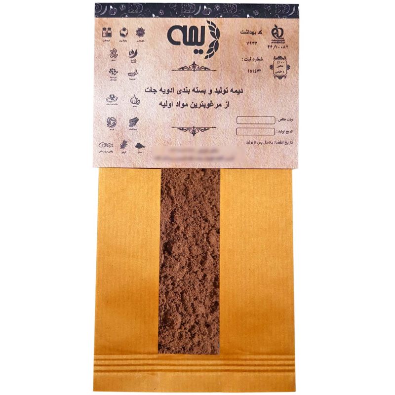 پودر هسته خرما دیمه - 100 گرم: وزن ۱۰۰ گرم وزن بستهبندی ۱۰۰ گرم ابعاد بستهبندی ۱۹x۱۲ سانتیمتر شماره پروانه بهداشت ۴۶۱۰۰۸۲ اجزای تشکیلدهنده پودر هسته خرما