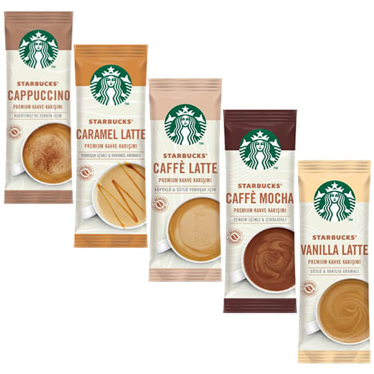 کافه فوری استارباکس ساشه ای: طعم کاپوچینو, کارامل لاته, لاته, موکا, وانیل لاته