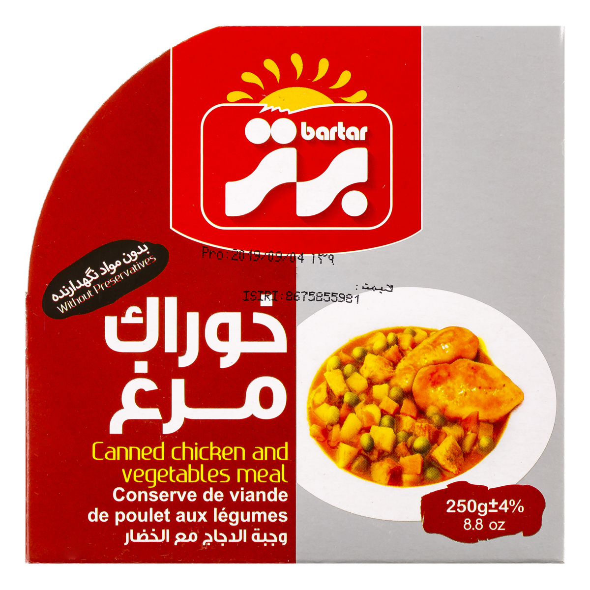 کنسرو خوراک مرغ برتر مقدار 250 گرم