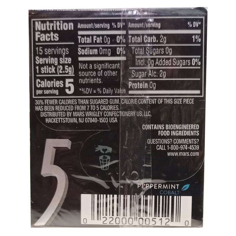 آدامس بدون شکر استیک کبالت نعناع تند فایو - 2.5 گرم بسته 15 عددی