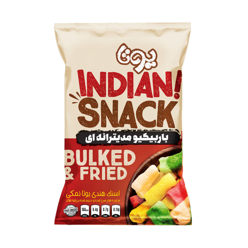اسنک هندی با طعم باربیکیو مدیترانه ای یوتا نمکی- 80 گرم: صنایع غذایی یوتا در سال 1396 در شهرک صنعتی یزد تاسیس گردید. این مجموعه با توسعه‌ی واحدهای خود هم‌اکنون دارای واحدهای مستقل تولید و گردآوری انواع تنقلات، بسته‌بندی، انبار و آزمایشگاه کنترل کیفیت مجهز به جدیدترین فناوری‌های کنترل کیفیت است. این مجموعه توانسته است به عنوان اولین تولیدکننده‌ی اسنک هندی طعم دار تمام بهداشتی وارد عرصه‌ی صنایع غذایی ایران شود.