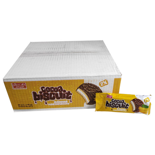 بیسکویت دوقلو روکش شکلاتی با طعم موز شیرین عسل - 45 گرم بسته 60 عدد