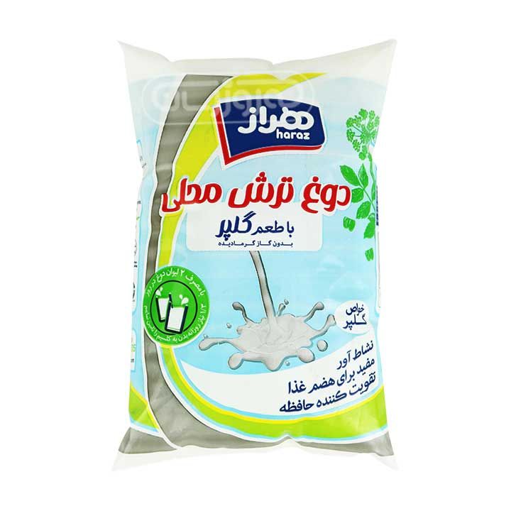 دوغ ترش محلی با طعم گلپر بدون گاز و گرما دیده هراز 900 گرمی نایلونی