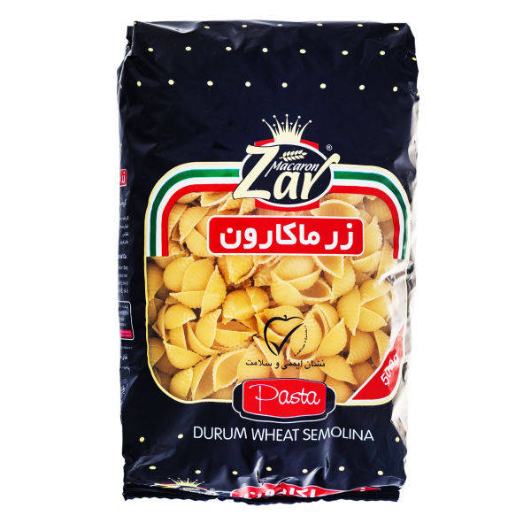 با ماکارونی صدفی «زر ماکارون» شام یا نهاری لذیذ و انرژی بخش خواهید داشت که ظاهر اشتهابرانگیز آن همه را به خود جذب میکند. این محصول زر ماکارون از ترکیب آب، آرد سمولینا بهدست آمده است. در هر 55گرم از این ماکارونی زر ماکارون 196 کیلوکالری انرژی، 1.1 گرم چربی و 0.14 گرم نمک وجود دارد. اسپاگتی زرماکارون در بستهبندی سلفونی عرضه میشود که در آن 500 گرم ماکارونی است.