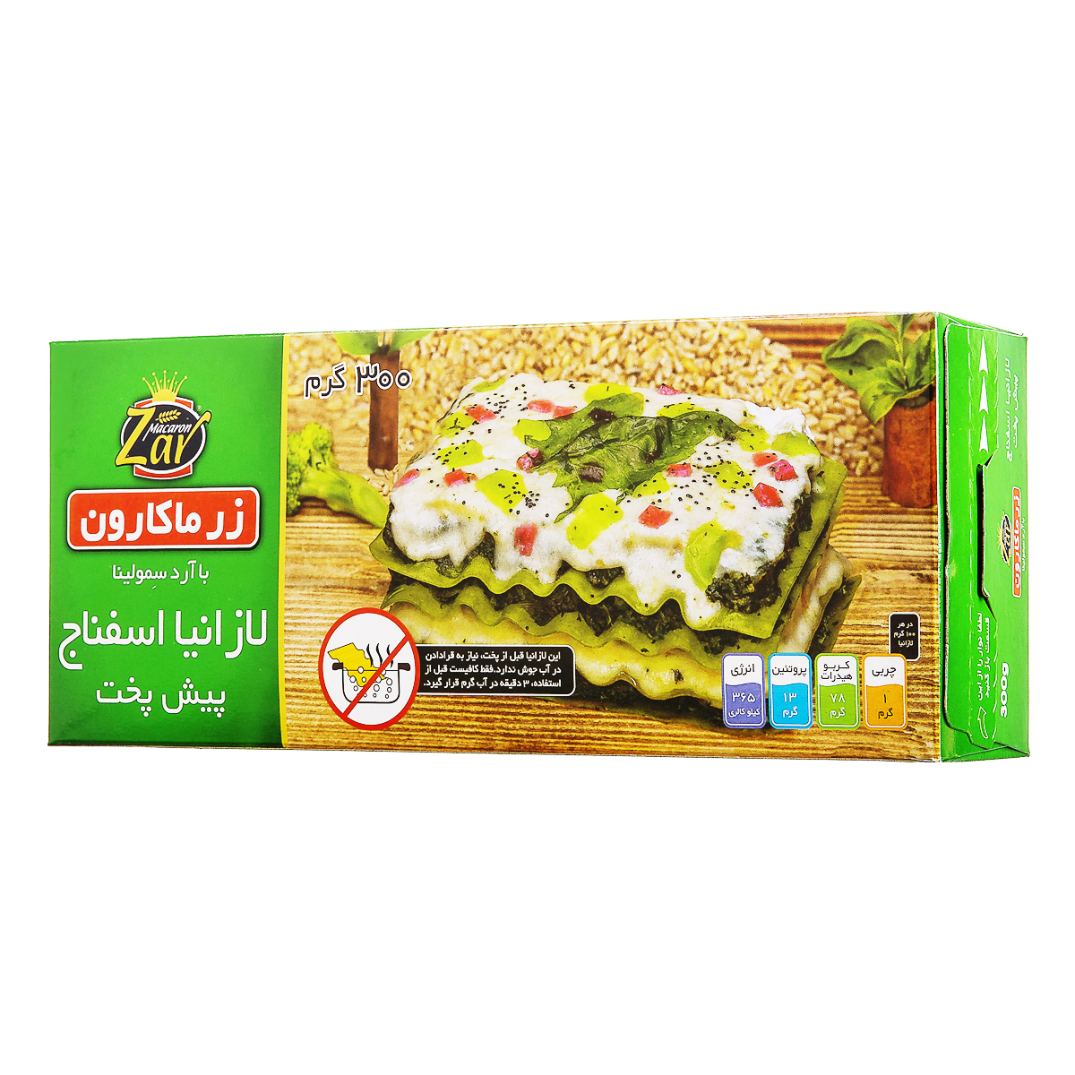 لازانیا پیش پخت اسفناج 300 گرم زر