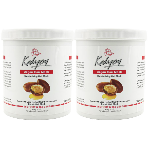 ماسک مو کالیون مدل آرگان حجم 750 میلی لیتر مجموعه 2 عددی سایر توضیحات حاوی روغن آرگان و کلاژن هیدرولیز شده حاوی ویتامین E بازسازی ، ترمیم و تغذیه عمقی مو های خشک و آسیب دیده نیاز به آبکشی