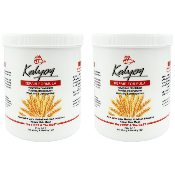 ماسک مو کالیون مدل گندم حجم 750 میلی لیتر مجموعه 2 عددی سایر توضیحات حاوی روغن آرگان و پروتئین هیدرولیز شده غنی شده با پروتئین B5 ترمیم کننده تارهای مو بدون ایجاد چربی اضافی روی مو افزایش رطوبت، شانه پذیری و انعطاف در مو بازسازی موهای آسیب دیده