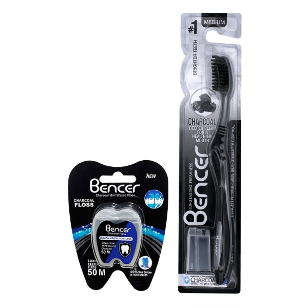 مسواک بنسر مدل Silver Charcoal با برس متوسط به همراه نخ دندان بنسر مدل Charcoal