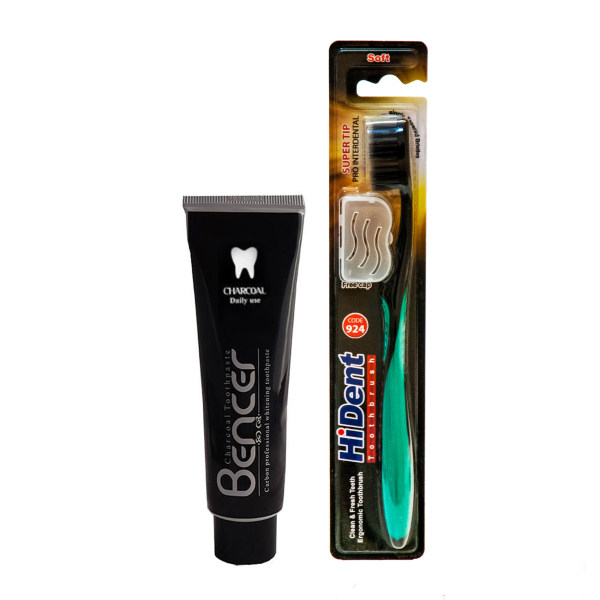 مسواک های دنت مدل 924 با برس نرم به همراه خمیر دندان بنسر مدل ذغالی حجم 120 میلی لیتر