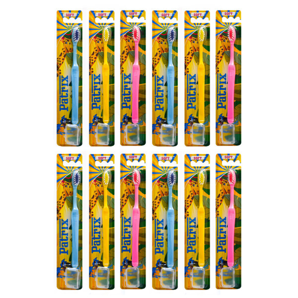 مسواک پاتریکس کودک کد 001 با برس نرم مجموعه 12 عدد